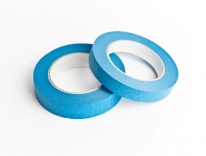 Modrá maskovací páska pro ochranu při nanášení disperzních barev a omítek, páska odolává vlhkosti a do 14 dnů lze pásku sejmout bez přenosu lepidla