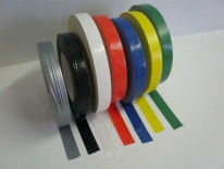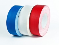 Barevné lepící pásky vyztužené textilní osnovou,impregnované polypropylenem, nepropustné pro vodu a vzduch, odolné vlhkosti.
