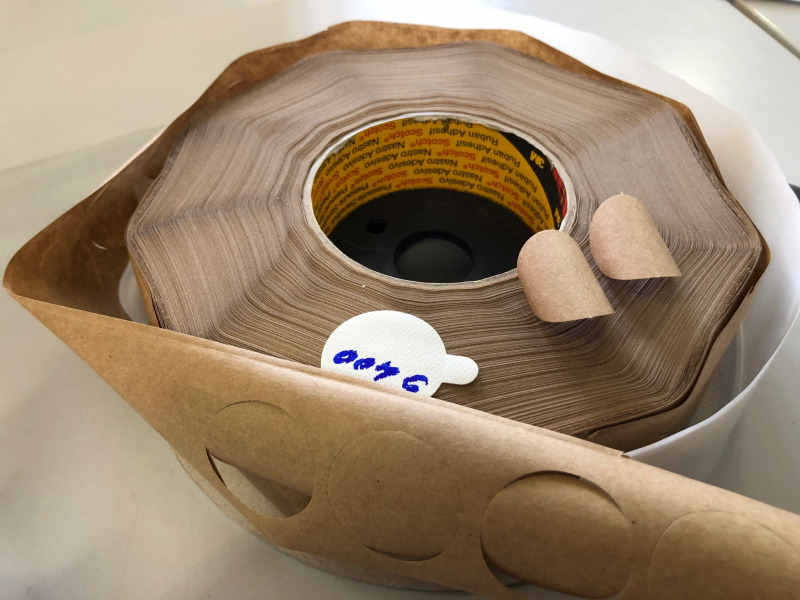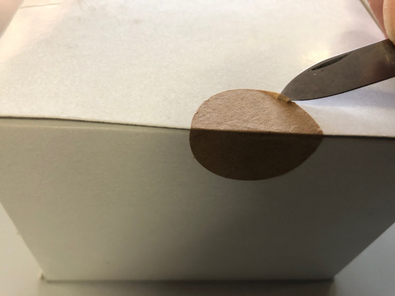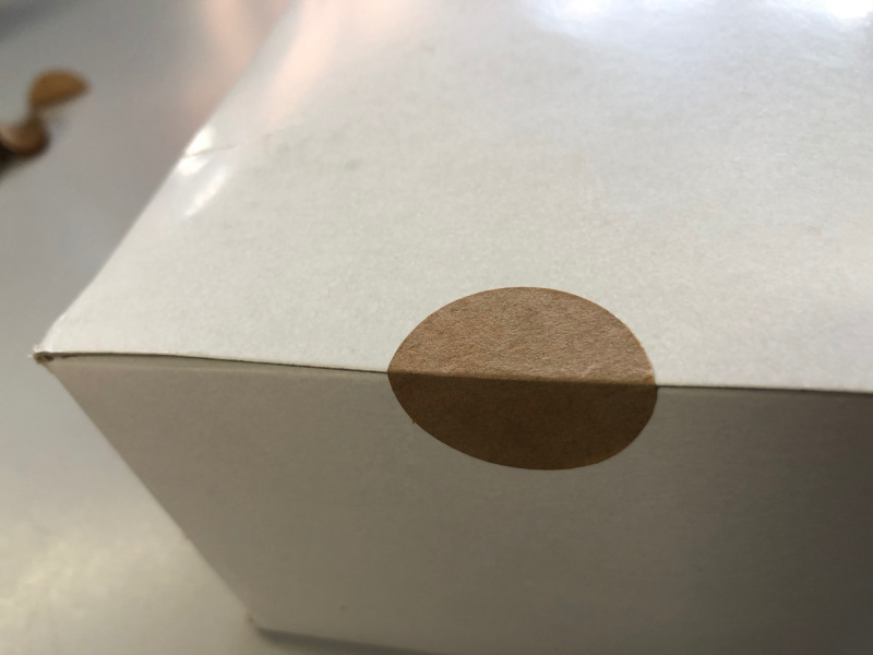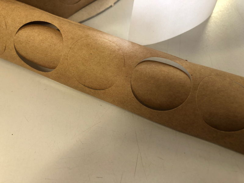 Výseky jsou v přírodní hnědé barvě a mají dextrinové vodou aktivované lepidlo. Výseky po nalepení velmi pevně přilnou ke kartonu nebo papíru a nelze je sejmout bez poškození podkladu - delaminace papíru. Kolečka nepovolují ani pod trvalým namáháním na rozdíl od samolepících koleček, takže nedochází k otevírání krabiček.