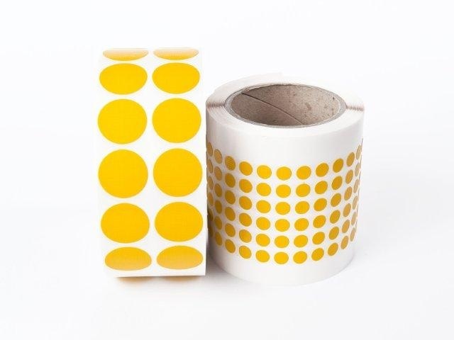 Barevná fixační kolečka o průměru 10 mm v balení po 1000 ks, mají na zadní straně tlakově aktivované lepidlo. Jsou vyrobena z vysoce odolné tkaniny impregnované PP, s lepidlem s vysokou přilnavostí na většinu plastů, lakovaných povrchů, sklo, dřevo. Lepidlo má dobrou teplotní odolnost, a kolečka lze i po delší době odlepit a nezanechají zbytky lepidla. Použití k dočasnému přilepování lístků s instrukcemi, vzkazů, obálek s informacemi, ale i pro snadnou dočasnou fixaci lehkých předmětů, zaslepení otvorů, barevné kodování atd. Máte-li zájem o větší balení po 5000 ks, zavolejte nám.Balení obsahuje 1000 koleček o průměru 10mm