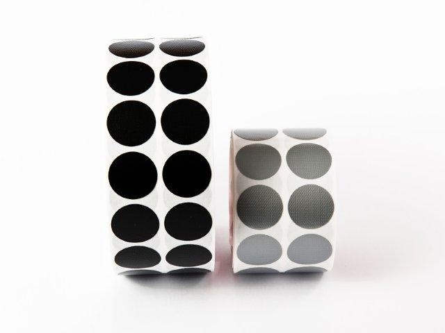 Barevná fixační kolečka o průměru Ø 30 mm v balení po 100 ks nebo 1000 ks, mají na zadní straně tlakově aktivované lepidlo. Jsou vyrobena z vysoce odolné tkaniny impregnované PP, s lepidlem s vysokou přilnavostí na většinu plastů, lakovaných povrchů, sklo, dřevo. Lepidlo má dobrou teplotní odolnost, a kolečka lze i po delší době odlepit a nezanechají zbytky lepidla. Kolečka se používají k dočasnému přilepování lístků s instrukcemi, vzkazů, obálek s informacemi, ale i pro snadnou dočasnou fixaci lehkých předmětů, zaslepení otvorů, barevné kodování atd.