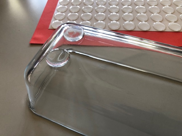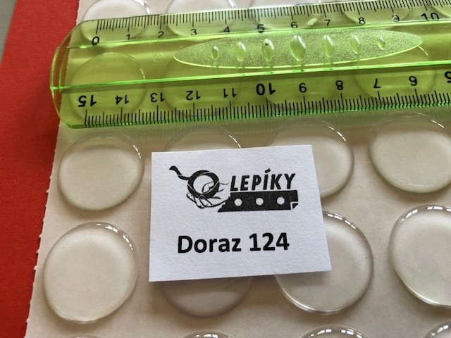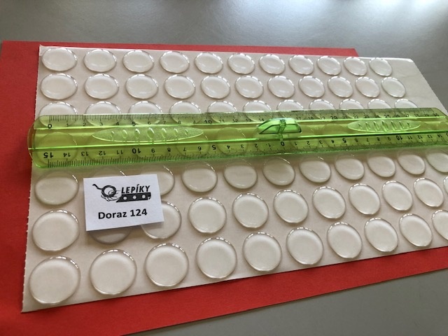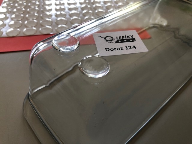 Samolepící dorazy /bumpony/ z vodově průhledné elastické pur pryže, čočkovitého tvaru, lepidlo průhledné akrylové. Průměr dorazu je 24 mm a výška 2,8 mm. Díky elasticitě hmota výborně absorbuje nárazy a tlaky, po uvolnění se vrací do původní polohy, tlumí vibrace a odhlučňuje konstrukci. Doraz je zcela transparentní, takže je vhodný pro aplikace na průhledných materiálech, jako sklo, plexisklo, polykarbonáty, kde neruší a nekazí vzhled. Použití Dorazy se používají pod tácky a drobné přístroje jako protiskluzové, aby tácky nebo přístroje samovolně neklouzaly po povrchu stolu, regálu. Dorazy se používají jako vymezovače na falešné lišty v dvojsklech. Dorazy se používají šuplíkách, dveřích, krytech k tlumení nárazu při zavírání.Samolepící dorazy o průměru 24 mm a výšce 2,8 mm - tzv. bumpony – ve VP, vodově průzračné .