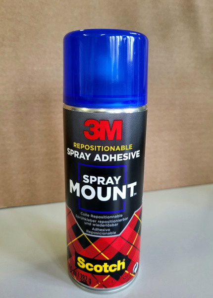 lze použít sprejová lepidla, například Spray Mount, který má jemný nástřik bez žmolků a kapek.