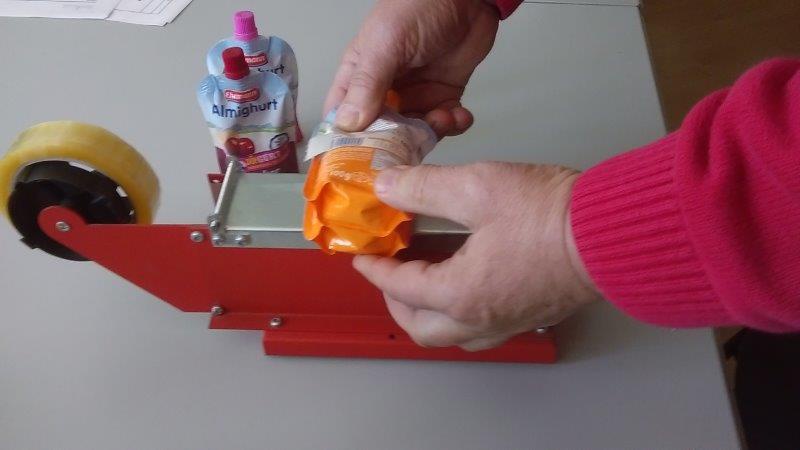 Ruční odvíječ převíjí pásku přes pryžový aplikační váleček, který je v kontaktu s lepeným povrchem. V tomto místě se přenáší tenká vrstva lepidla na podklad a ochranný papír bez lepidla je navíjen zpět do aplikátoru.