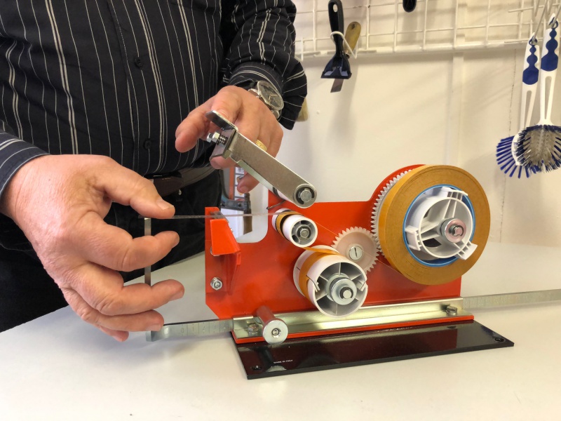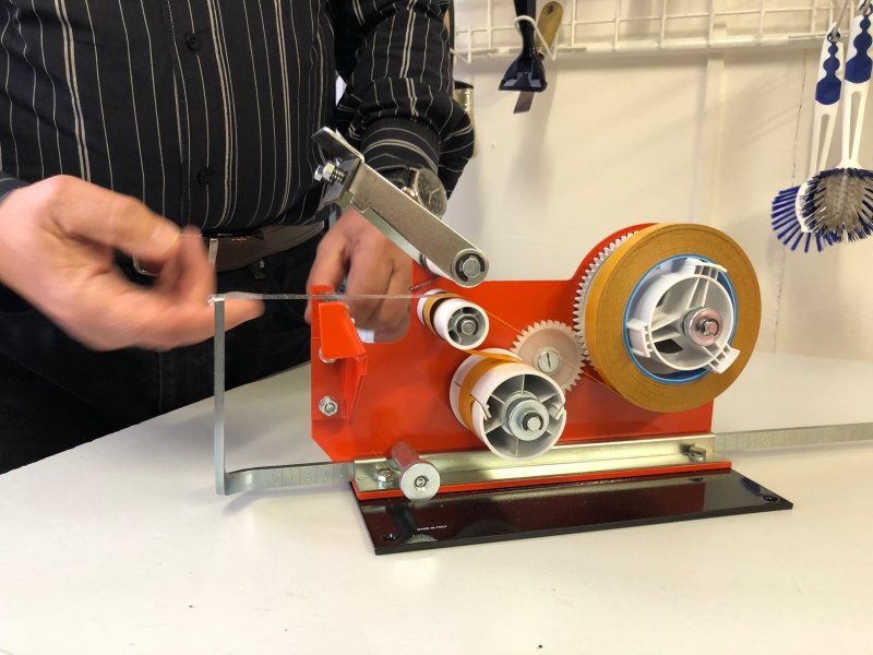 Aplikátor pracuje s oboustrannými páskami a jednostrannými páskami s linerem, odvíjí automaticky krycí papír. Cívka se vloží na unašeč pásky, protáhne mechanismem a liner se připevní na odmotávací kolečko. Tahem za pásku se automaticky odvíjí krycí papír a pomocí páky s ostřím na aplikátoru se páska přeruší. Abychom řezali danou délku pásky, vloží se měřící tyč a zafixuje se v požadované délce. Pásku pak vytahujeme přesně podle tyče. Postup práce si můžete prohlédnout na připojeném videu a na obrázcích.Stolní aplikátor oboustranných pásek LST2 slouží k přípravě pruhů lepicí pásky v požadované délce pro okamžité nalepení, vzhledem ke konstrukci nože jej lze použít i pro silnější a pěnové pásky.