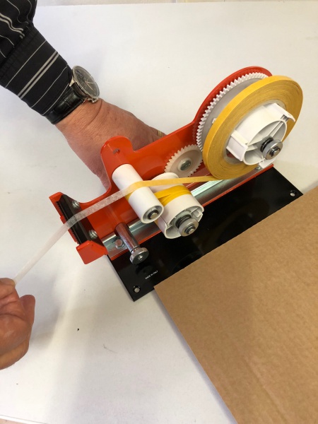 Ruční odvíječ převíjí pásku přes pryžový aplikační váleček, který je v kontaktu s lepeným povrchem. V tomto místě se přenáší tenká vrstva lepidla na podklad a ochranný papír bez lepidla je navíjen zpět do aplikátoru.