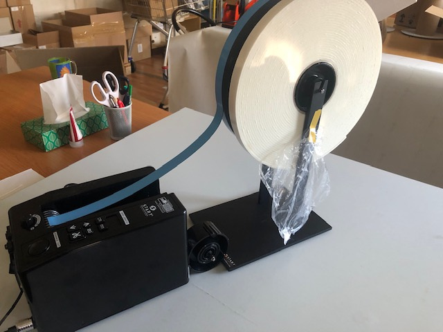 stříhá pásku v metráži z vložené role na proužky v předem stanovené délce, kterou na přístroji snadno nastavíme, automaticky. Lze rovněž stříhat pásku na rozměr, jaký zrovna potřebujeme, pomocí manuálního nastavení. Jak strojek pracuje ukazuje video.Elektronický aplikátor pěnovek L100 a L101