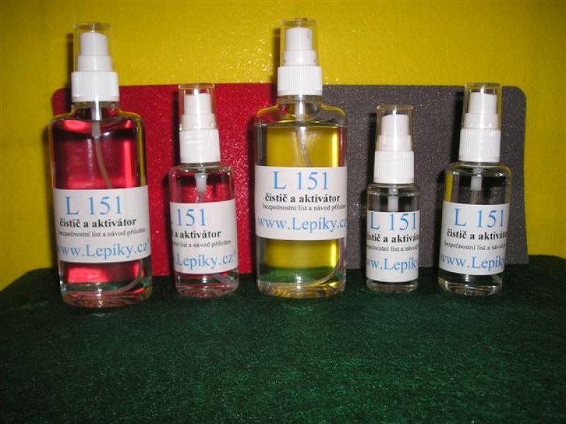 Aktivátor L 151 je ekologický aktivační a čistící prostředek, který optimálním způsobem připravuje povrch před aplikací pásek s tlakově aktivovaným lepidlem a samolepek Aktivátor L 151 se používá pro aktivaci a odmaštění při aplikaci protiskluzových pásek, před lepením oboustrannými páskami nebo před nalepením samolepících suchých zipů, CD špuntů, vinylových podlahových pásek a AFT pásek. Používá se na nesavé a neporézní materiály jako jsou plasty, sklo, kovy, keramika, dlažba, kompozity. Sprej má mechanickou pumpičku, jemně rozprašuje a tak stačí jen malé množství přípravku na aktivování velké plochy. Aktivátor je dodáván s návodem k použití. K dispozici jsou lahvičky o velikosti 50 nebo 110 mililitrů. Pozor, jedná se o hořlavinu!!! Nejíst, nepít, nekouřit, nepoužívat jiskřící zařízení, otevřený plamen, v místnostech dobře větrat! povrch jemně nasprejovat a setřít tekutinu v jednom směru čistým toaletním papírem, který absorbuje rozpuštěnou špínu. Podle potřeby lze opakovat. Nechat uschnout a ihned lepit.Proč používat aktivátor