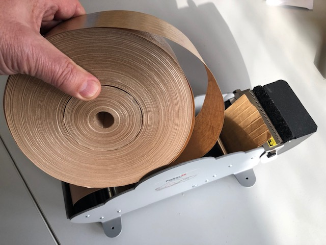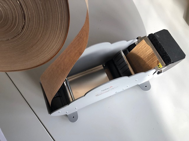 Vhodný pro zesílené i běžné papírové tzv. "olizovací pásky" tedy ekologické papírové, vodou aktivované pásky.
