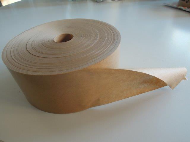 pásku papírovou balicí, hnědou, vodou aktivovatelnou, zesílenou třemi vlákny máme skladem