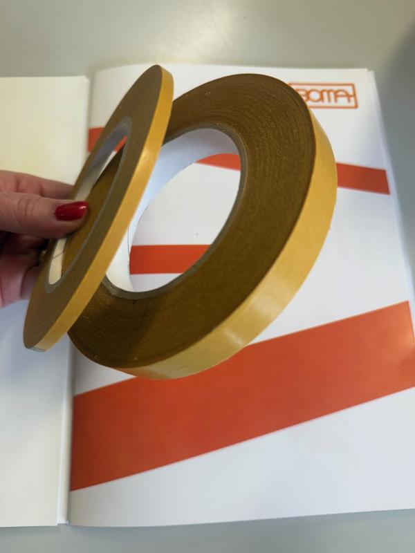 Páska je vhodná pro rychlé a čisté lepení papírů a kartonu, lepení v polygrafii, lepení fotografií, dočasná fixace látek před šitím, ideální pro scrap booking a v domácnosti. Oboustranně lepící páska na bázi průhledné syntetické pryže, nanesené na cigaretovém papíru.