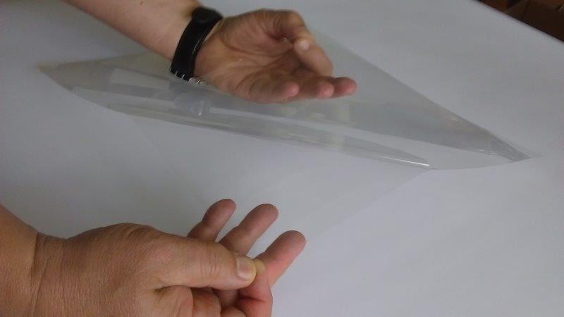 pro průhledné nalepení se používá průhledné laminační lepidlo v archu.