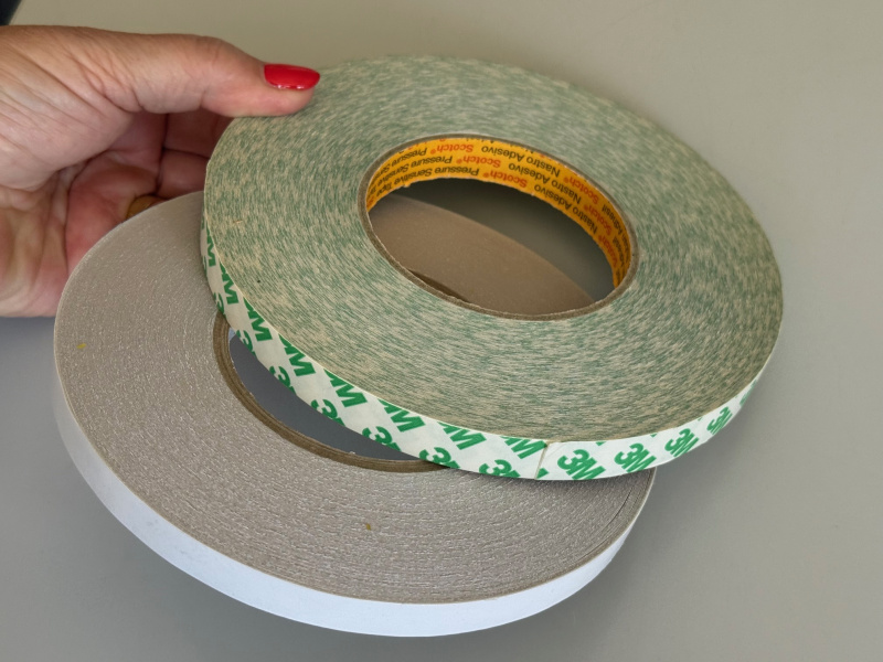 Tenké pásky jsou zpravidla tvořeny nosným filmem nebo folií na které je po obou stranách naneseno kontaktní lepidlo. Na oboustranných páskách se k chránění lepící vrstvy používá liner (ochranný papír nebo film).