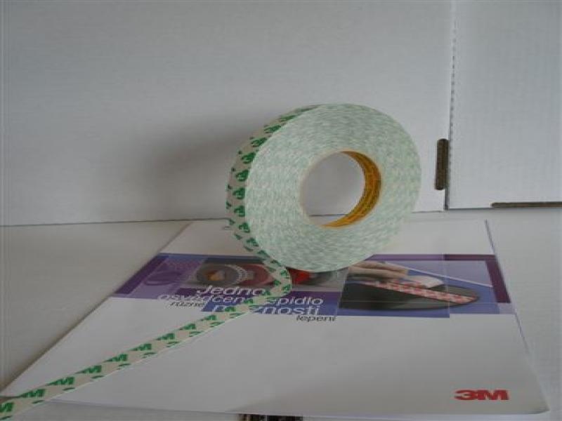Vysoceúčinná bílá páska, díky tloušťce 0.26 mm vhodná pro lepení hrubších materiálů. Je tvořena PVC nosným filmem pokrytým oboustranně modifikovaným akrylovým lepidlem. Díky složení páska výborně odolává účinkům chemických změkčovadel. Teplotní odolnost pásky je -30 až +70 C, krátkodobě až 85 C. Délka jedné role je 50 m. Krycí papír potištěn zeleným logem 3M. Dodáváme již od 1 role.Ekvivalent páska 962, doporučuji odzkoušet