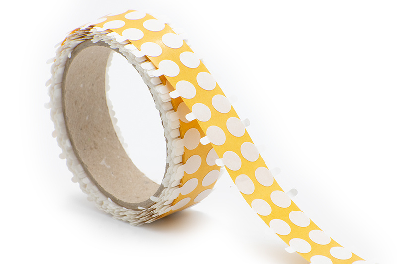 Výseky jsou vyrobeny z tenké oboustranné pásky, povrstvené z obou stran vysocepřilnavým tlakově aktivovaným akrylovým lepidlem. Teplotní odolnost lepeného spoje je -20 až +90 stupňů C, páska má vysokou smykovou pevnost a adhesi k většině materiálů s vyjímkou silikonu a teflonu, aplikaci na PP, PE a laminu doporučujeme odzkoušet, na vyžádání zasíláme vzorky. Výseky se používají pro trvalé a nerozebiratelné spojování papíru, kartonů, laminovaných materiálů,lehkých předmětů z plastů, skla, lakovaných kovů. Výseky se dodávají ve dvou řadách na nosném papíru, ouško / fingerlift/ je zobáček na horním krycím papíru, který umožňuje snadné sejmutí výseku s nosného papíru, nalepení celého výseku na správné místo. Po nalepení je výsek stále kryt fingerliftem - papírem se zobáčkem, což umožňuje při závěrečné montáži rychlé odstranění krycího papíru a finální slepení. Rychlá, přesná, čistá, bezpečná a efektivní práce. Úspora nákladů. Pro odzkoušení si vyžádejte vzorek zdarma !Výseky z tenké oboustranné pásky s oušky /fingerlifty/ o průměru 10mm po 1000 nebo 5000 ks na roli