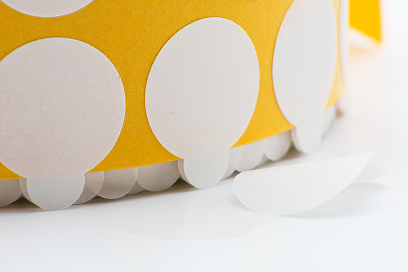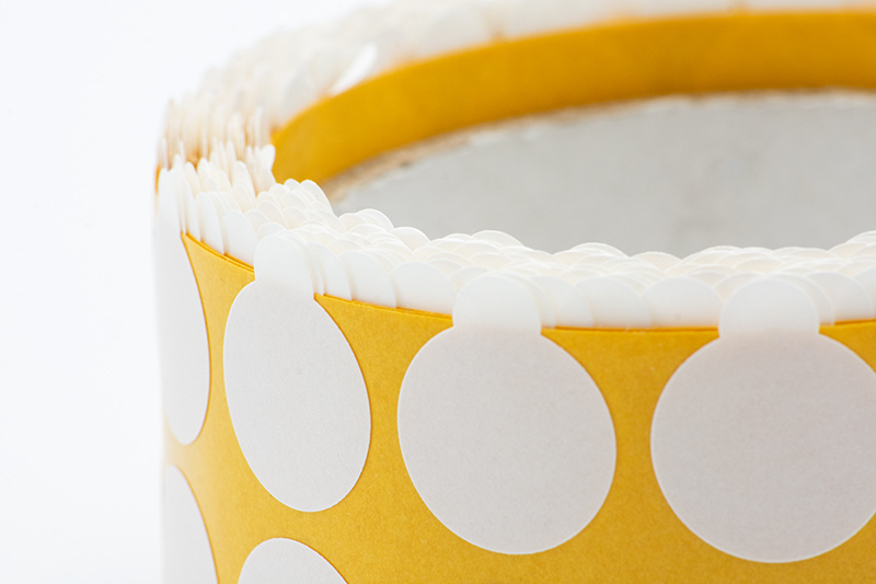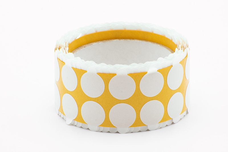 Výseky jsou vyrobeny z oboustranné lepící pásky, povrstvené z obou stran vysocepřilnavým tlakově aktivovaným akrylovým lepidlem. Teplotní odolnost lepeného spoje je -20 až +90 stupňů C, páska má vysokou smykovou pevnost a adhesi k většině materiálů s vyjímkou silikonu, teflonu, na povrchu jako pp a pe je nutno odzkoušet, vzorek na vyžádání pošleme. Výseky se používají pro trvalé a nerozebiratelné spojování papíru, kartonů, laminovaných materiálů, lehkých dílů z plastů, skla, lakovaných kovů. Výseky se dodávají ve dvou řadách na nosném papíru, ouško-fingerlift je zobáček na horním krycím papíru, který umožňuje snadné sejmutí výseku s nosného papíru, nalepení celého výseku na správné místo. Po nalepení je výsek stále kryt fingerliftem - papírem se zobáčkem, což umožňuje při závěrečné montáži rychlé odstranění krycího papíru a finální slepení. Rychlá, přesná, čistá, bezpečná a efektivní práce. Úspora nákladů. Pro dozkoušení si vyžádejte vzorky zdarma!Výseky z tenké oboustranné pásky s oušky /fingerlifty/ o průměru 20mm po 5000 nebo 1000 ks na roli
