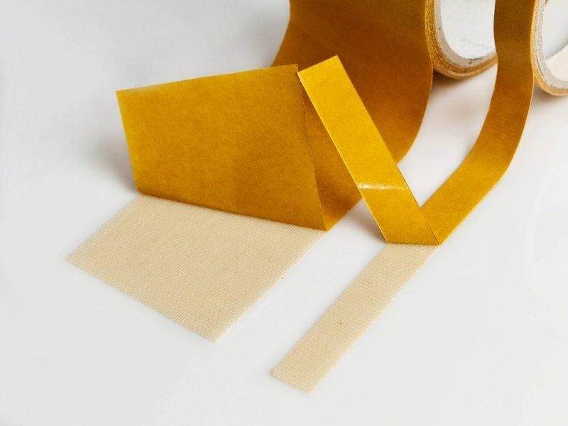 Oboustranná kobercová páska tvořená průhledným kontaktním lepidlem na bázi syntetické pryže s vysokou přilnavostí bez přídavku plastifikátorů.