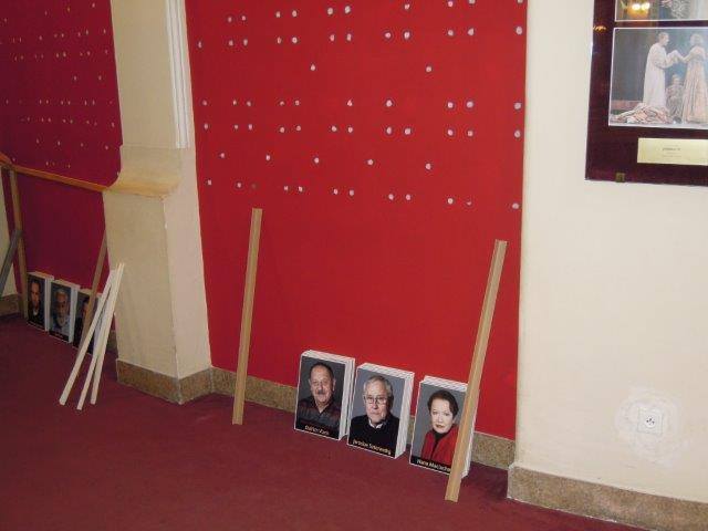 Naši technici instalovali na chodbách divadla expozici fotografií místních hereckých legend.