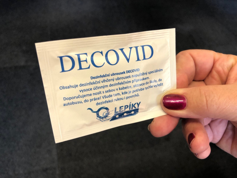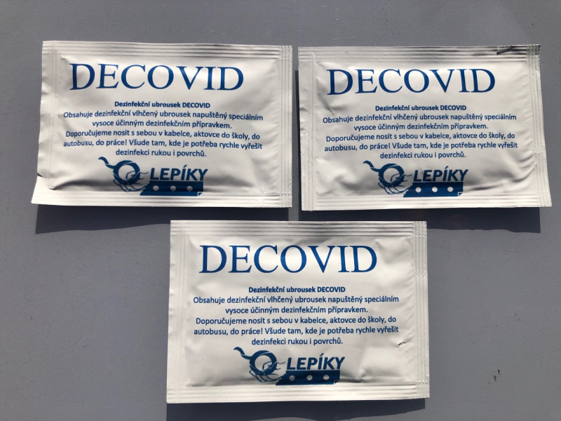 Desinfekční vlhčený ubrousek napuštěný speciálním vysoceúčinným bezalkoholovým dezinfekčním přípravkem. Složení a pokyny na každém ubrousku ! Každý ubrousek obsahuje 3,5 ml desinfekčního přípravku. Přípravek dráždí oči, proto dávejte pozor, abyste nezanesli stopy přípravku do očí. V případě zasažení očí doporučujeme důkladné vypláchnutí očí pitnou vodou. Přípravek je škodlivý pro vodní organismy, proto nevhazujte použité ubrousky do toalety nebo volně v přírodě!! Decovid, desinfekční antivirový ubrousek pro ruce a pokožku a předměty denního použití.