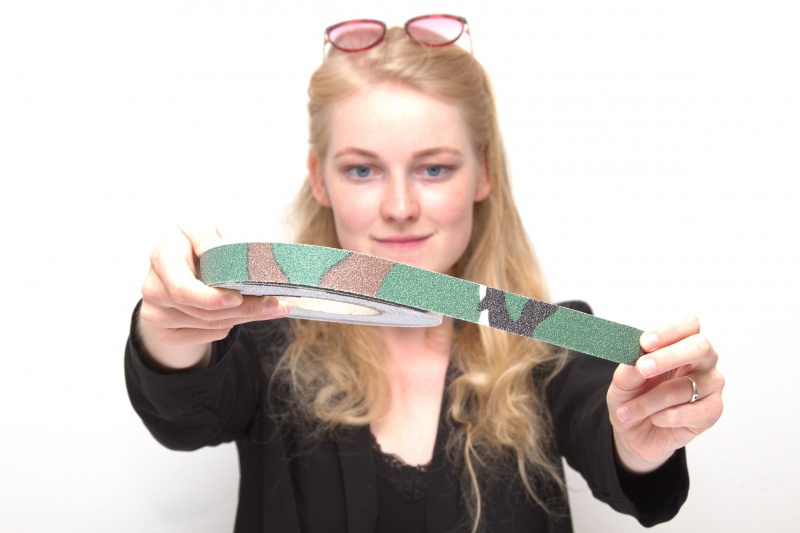 Pokud máte v domácnosti, nebo podniku, v interiéru, či exteriéru místa, kde hrozí úraz při pádu na kluzkém povrchu, nečekejte na nehodu a využijte jednoduché a výhodné řešení - samolepící protiskluzovou pásku - ještě dnes. Samolepící protiskluzové pásky jsou vhodné především na podlahové krytiny, schody a místa s vyšším rizikem uklouznutí. Aplikace je možná jak v interiéru, tak exteriéru. Protiskluzovky jsou vyrobeny z vrstvy speciálního plastického filmu, který je na spodní straně pokryt vrstvou vysoce přilnavého a trvanlivého akrylového lepidla a na horní, funkční straně, je povrstven korundovými zrny v přesně vyvážené frakci tak, aby se dosáhlo maximálního koeficientu tření a vysoké trvanlivosti. Princip protiskluzové pásky Korund je materiál používáný předními výrobci brusiv pro jeho nesporné kvality - především tvrdost. Korundové krystaly jsou čiré, což nám umožňuje výrobu samolepících protiskluzových pásek různých barevných provedení včetně čiré. Údržba Samolepící protiskluzové pásky se dají čistit běžnými čistícími prostředky. Nepoužívejte hadry, protože uvolňují vlákna! Aplikace protiskluzové pásky Před lepením protiskluzové pásky doporučujeme povrch důkladně očistit a odmastit. Samolepící protiskluzová páska v šířce 25 milimetrů navinutá na roli dlouhé 18,3 metrů v provedení kamufláž.
