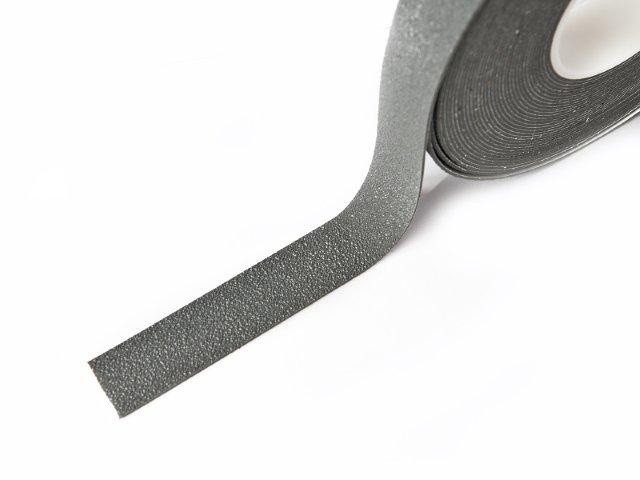 Samolepící extrahrubé pryžové protiskluzové pásky v šířce 25 milimetrů na roli dlouhé 18,3 metrů, v šedé nebo černé barvě. Pokud máte v domácnosti, nebo podniku, na lodi, surfu, v interiéru, či exteriéru místa, kde hrozí úraz při pádu na kluzkém povrchu, nečekejte na nehodu a využijte jednoduché a výhodné řešení - samolepící protiskluzovou pásku - ještě dnes. Samolepící protiskluzové pásky jsou vhodné především na podlahové krytiny, schody a místa s vyšším rizikem uklouznutí. Aplikace je možná jak v interiéru, tak exteriéru. Protiskluzovky jsou vyrobeny z vrstvy speciální elastické mikropryže, která je na spodní straně pokryta vrstvou vysoce přilnavého a trvanlivého akrylového lepidla a na horní, funkční straně, je pryž napěněna, aby se dosáhlo do největší drsnosti povrchu. pryžové spočívá v drsnosti a velikosti povrchu. Tyto pásky jsou v nejvyšší třídě protiskluznosti. Pásky mají tloušťku kolem 1,7 mm. Pásky neobsahují korund, takže neuvolňují zrna, která by mohla poškrábat lakované povrchy. Samolepící protiskluzové pásky se dají čistit běžnými čistícími prostředky. Před lepením protiskluzové pásky doporučujeme povrch důkladně očistit a odmastit. Neodmašťujte benzínem, nejlepší je aktivátor L151 V místech, kde nelze zajistit 100% přilnutí k povrchu (spáry dlaždic a podobně) doporučujeme pásy naříznout a dokonale přilepit, případně spáry pod protiskluzovou páskou tmelem dokonale zarovnat. Protiskluzová páska by neměla být lepena při teplotách pod patnáct stupňů. Tyto pásky neškrábou, proto se používají na dřevěné lakované schody, surfy,lakované paluby jachet a lodí, do koupelen, aquacenter, ale i průmyslových kuchyní prosím pošlete adresu a vyžádejte si vzorky zdarma a sami si je odzkoušejte jak Vám vyhovují z hlediska funkce a jak se Vám líbí z hlediska designu.Princip protiskluzové pásky