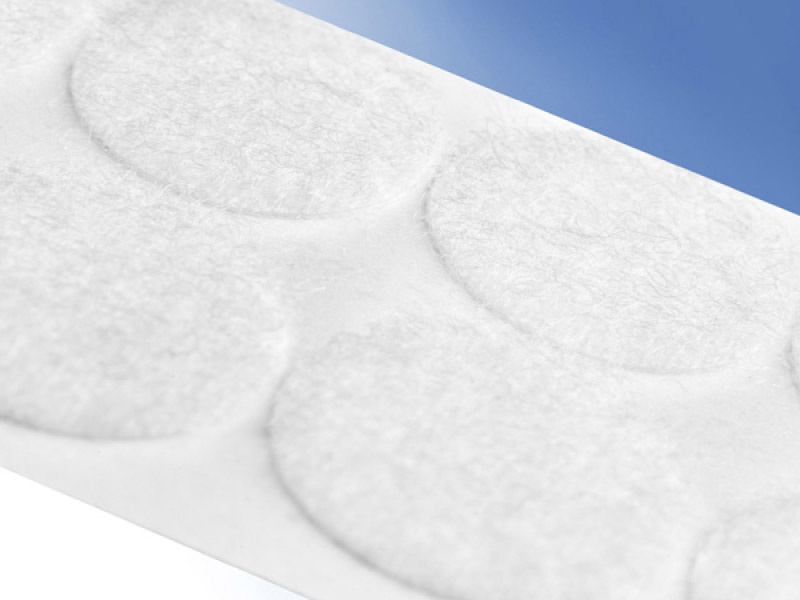 Kruhové výseky o průměru 35mm po 650 ks na roli, smyčky suchý zip s perfektním kontaktním lepidlem s velmi dobrou přilnavostí na většinu plastů, sklo, lakované dřevo, lakované kovové povrchy i na keramiku a kámen. Zvláštností tohoto lepidla je teplotní odolnost až 93 stupňů C. Příklady použití: Uzavírání plastových obálek s dokumentací, uzavírání obalů, fixace obrázků na stěny například na výstavách.