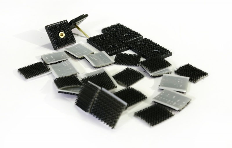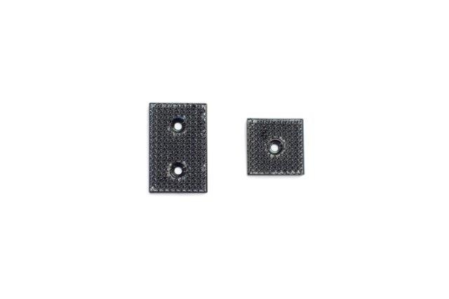 Výsek z plastového zaklapávacího unizipu v černé barvě s jedním zapuštěným otvorem pro šroub o rozměru 32 x 32 mm. Výseky se používají tam, kde nelze strukturálně lepit, například na zdech s nehomogenní omítkou nebo na hrubých dřevotřískách.Cena pro 10 ks.