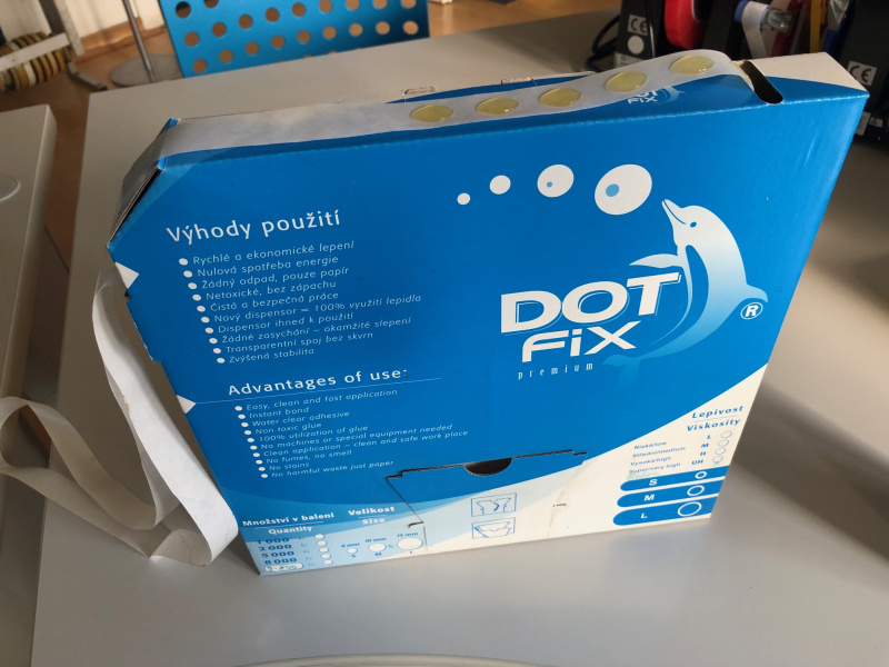 Lepidlo je nažloutlé. Lepící ovály o rozměru cca 10mm šířka a 14mm délka za sebou na silikonovaném papíru, s vysokou lepivostí v papírovém dispensoru. Ideální zejména pro trvalé vlepování kosmetiky, potravin, letáků, karet nebo fotografií. Použití Použití je jednoduché a rychlé - z krabičky ve které jsou Lepíky L baleny, vysunete papírové nožičky, postavíte ji na stůl a můžete okamžitě začít vlepovat. Výhody Lepíků L Výrobce Lepíky s.r.o.Lepíky L/H DotFix® ovál cca 10 x 14 mm, snímatelné po 2800 ks v dispensoru - papírové aplikační krabici.